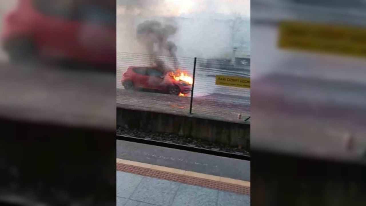 Bursa’da seyir halindeki otomobil bir anda alev alırken o anlar cep telefonu kamerasına yansıdı.