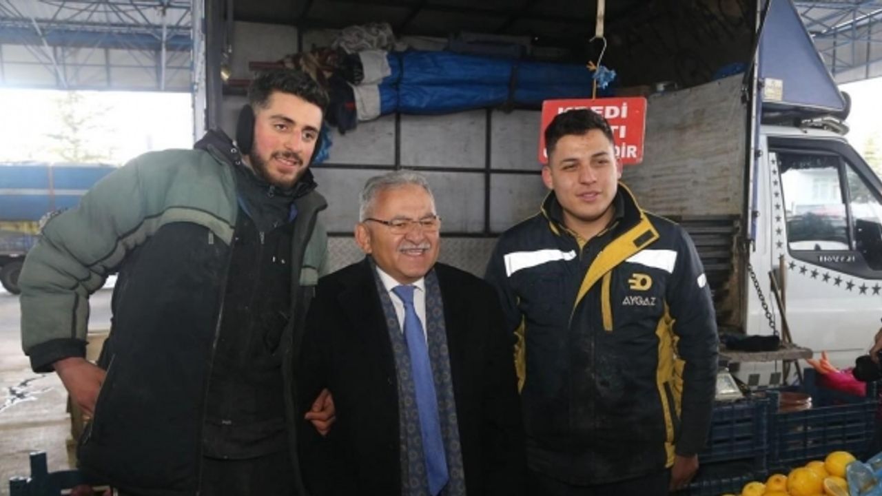 Pazarda alışveriş yapan vatandaşlarla yakından ilgilenen Büyükkılıç, pazar yerinde Kayserililerin ilgi ve sevgi ile karşılaştı.