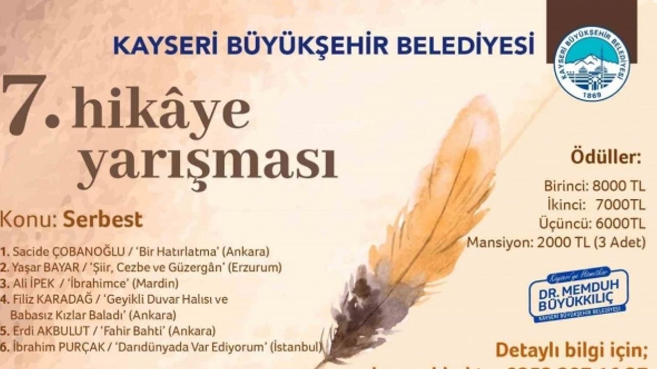 Kayseri Büyükşehir Belediyesi tarafından her sene düzenlenen ve yoğun ilgi gören hikâye yarışmasının 7’ncisi sonuçlandı.