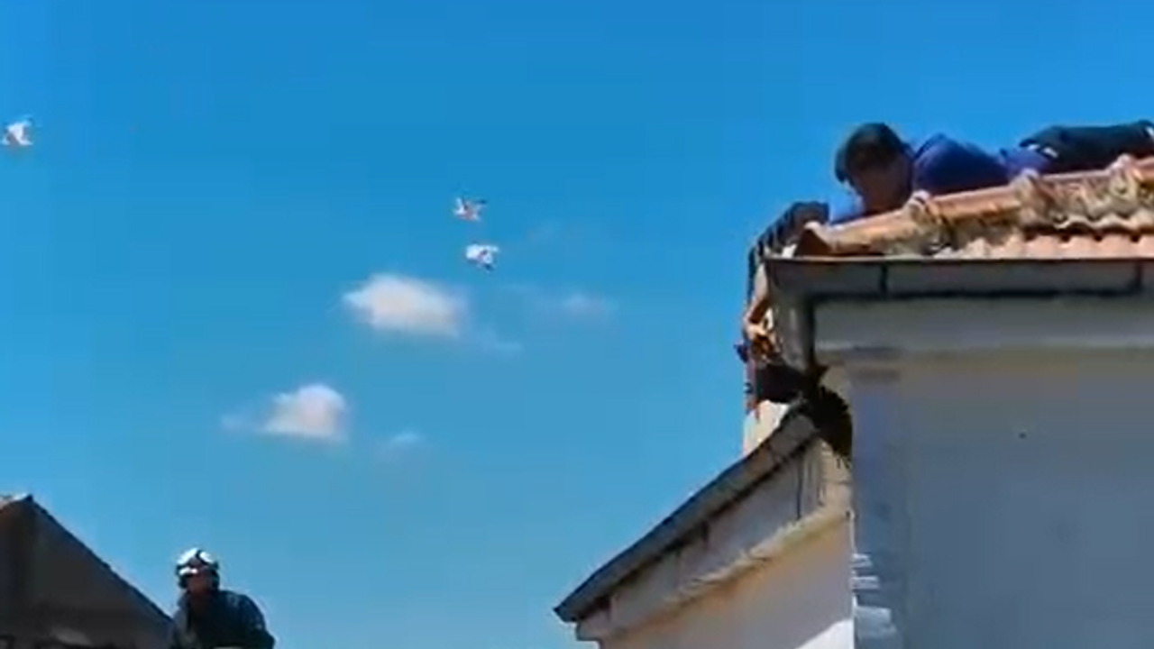 Yalova’da bir binanın çatısında bulunan ipe ayakları dolanan karga bir polis memurunun gayretleriyle kurtarıldı.