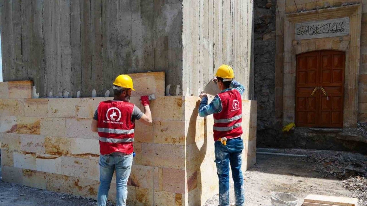 İnce işçilik gerçekleştirerek, en ince ayrıntısına kadar ölçülüp bir düzen içerisinde taşları yerleştiren ekipler, kısa süre içerisinde çalışmalarını tamamlayarak minareleri camiye yakışır hale getirmeyi planlıyor.