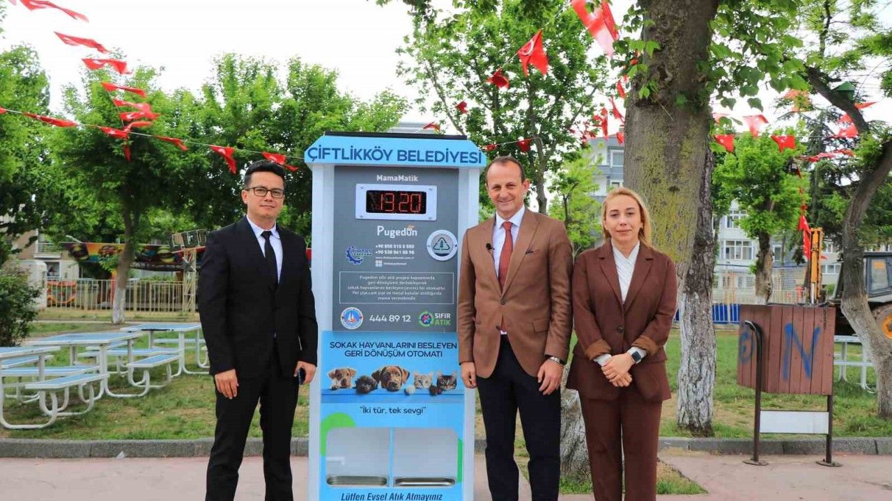 Çiftlikköy Belediyesi, sokak hayvanları için mama ve su veren geri dönüşüm otomatlarını devreye soktu. Başkan Adil Yele, Yalova’da bir ilk olan projenin vatandaşlardan ilgi gördüğünü ve otomat sayısını ilerleyen dönemde arttıracaklarını söyledi.