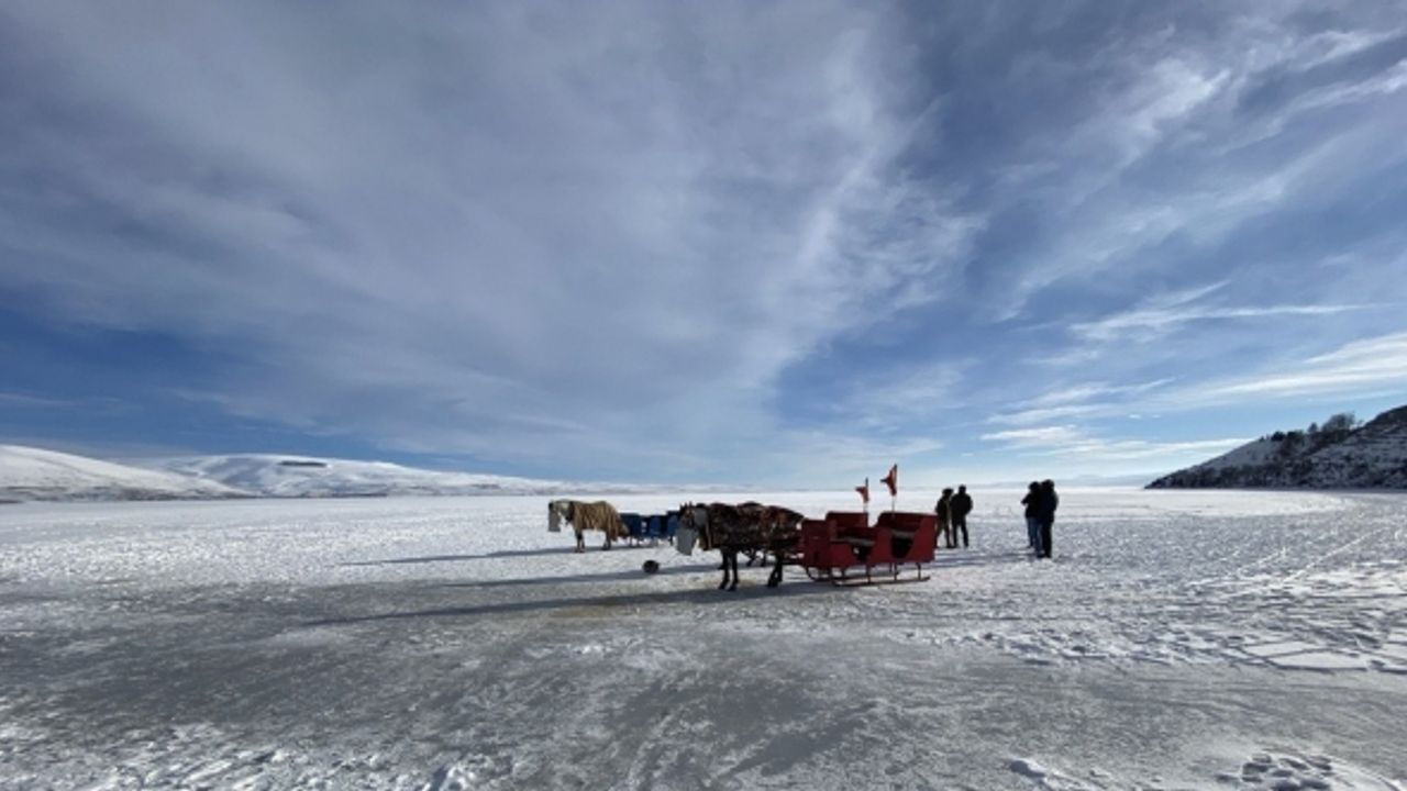 Kar yağışının ardından, hava sıcaklığının sıfırın altında 10 dereceye kadar düşmesi nedeniyle Çıldır Gölü’nün yüzeyi buz tutmaya başladı. Yüzeyi yaklaşık 10 santim buz tutan Çıldır Gölü’nün simgesi haline gelen atlı kızaklar da buzun üzerine çıkmaya başladı. Yerli ve yabancı turistleri buz üzerinde gezdiren atlı kızaklar keyifli anlar yaşatıyor.