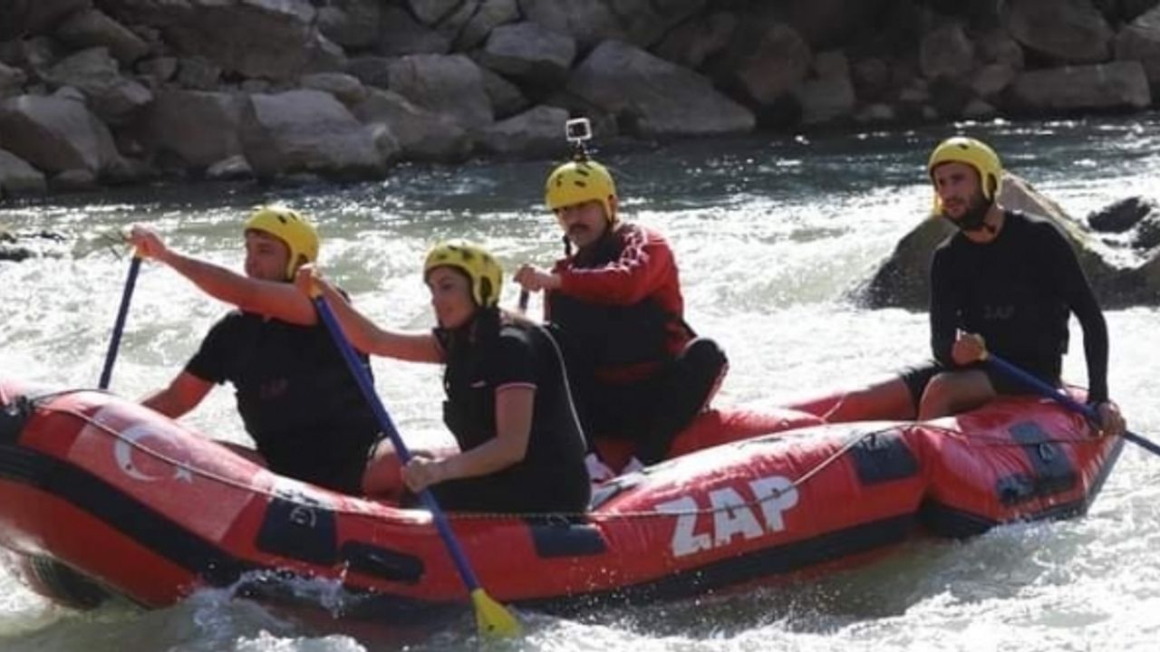 Hakkari’nin Çukurca ilçesinde Zap Nehri üzerinde yapılan rafting su sporu, tüm heyecanıyla devam ediyor.