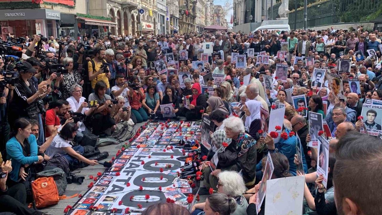 Gözaltındayken kaybolan yakınlarının akıbetini soran ve faillerin yargılanmasını isteyen ‘Cumartesi Anneleri’ olarak bilinen grup, Galatasaray Meydanı’nda bininci hafta eylemini gerçekleştirdi.