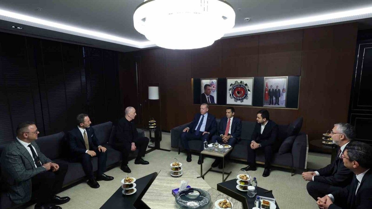 Cumhurbaşkanı Erdoğan, CHP Genel Başkanı Özgür Özel ile AK Parti Genel Merkezi’ndeki görüşmesinin ardından Türk Metal Sendikası’na geldi.