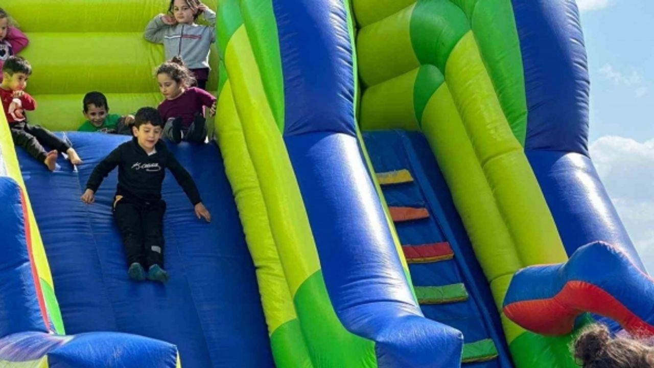Deprem bölgelerinden Hatay’ın Samandağ ilçesinde kurulan oyun alanı, çocuklar için hayatın az da olsa normale dönmesini sağlıyor.