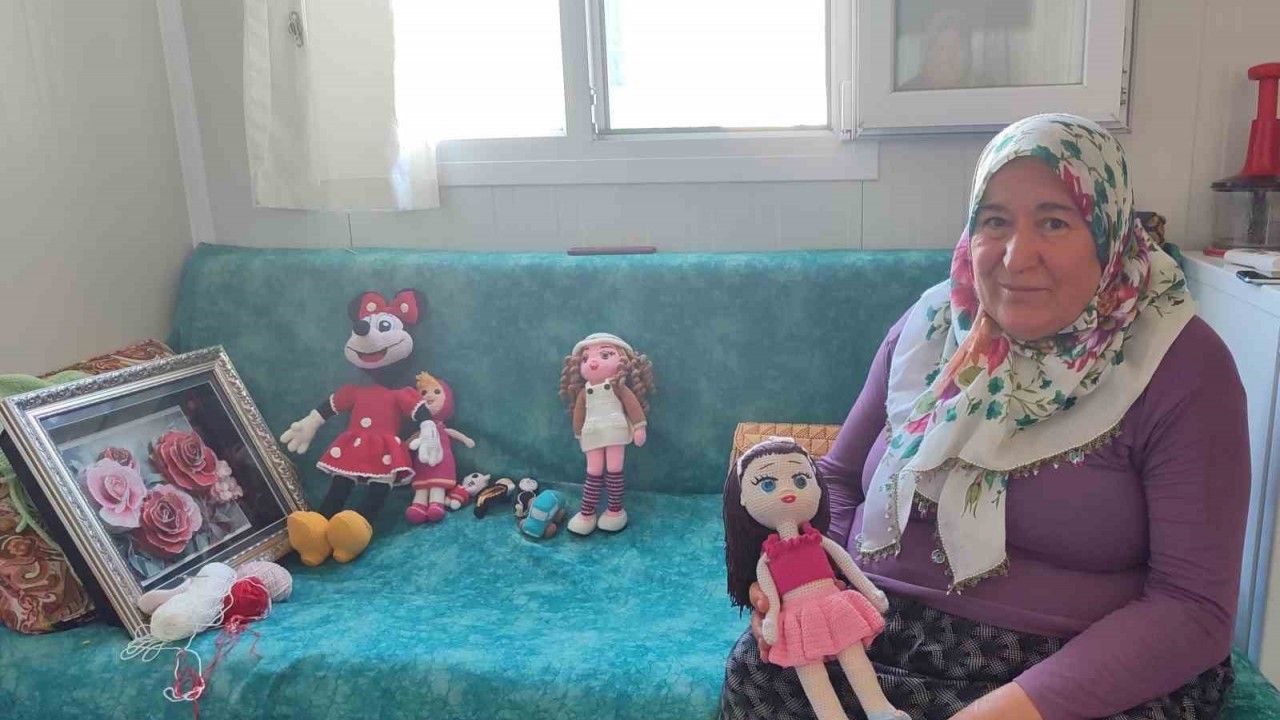 Türkoğlu ilçesi Lojistik Konteyner Kent’te yaşayan 62 yaşındaki 2 çocuk annesi Nurhan Gürdal, bez bebek, çanta ve örgü modelleri yaparak moral buluyor. Gürdal, "Bu örgü işleriyle stresimi atıyorum" dedi.
