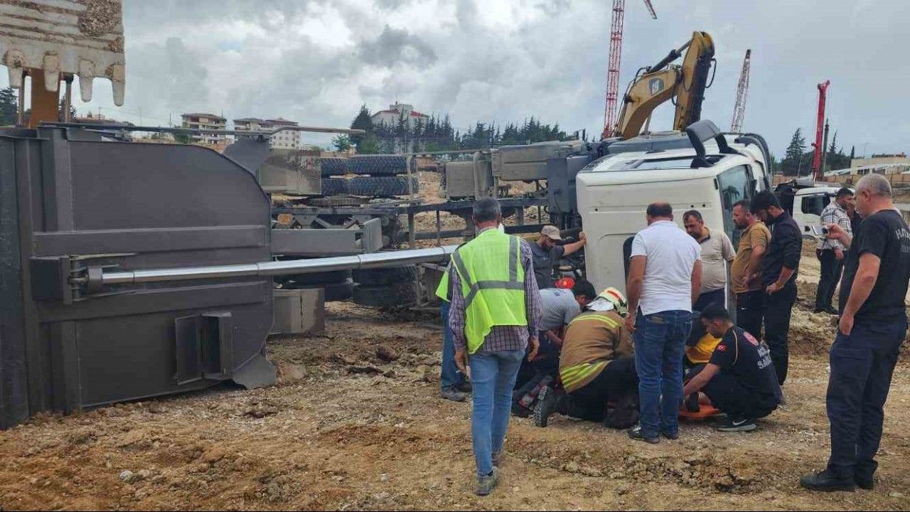 Hatay’ın Antakya ilçesinde şantiye alanında devrilen hafriyat kamyonunun sürücüsü yaralandı.