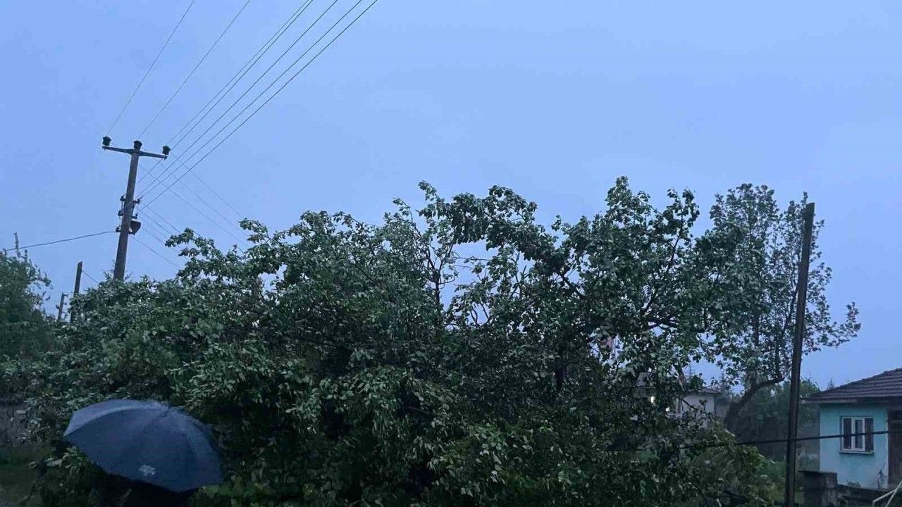 Düzce’de aniden bastıran şiddetli yağış ve rüzgar sebebi ile ağaç ve elektrik direği devrildi.