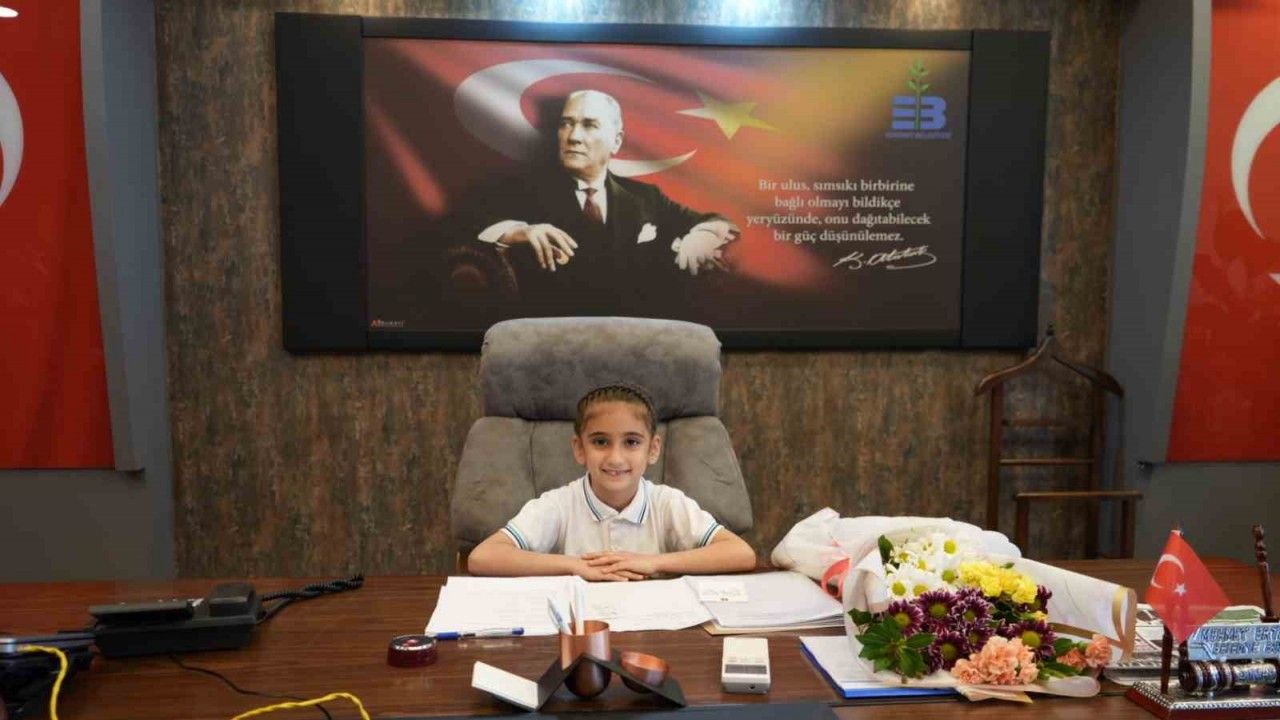 Başkan Ertaş, 23 Nisan Ulusal Egemenlik ve Çocuk Bayramı sebebiyle Belediye Başkanlığı koltuğunu Karagözoğlu ilkokulu 1/B sınıfı öğrencisi Begüm Taşkıran’a bıraktı.