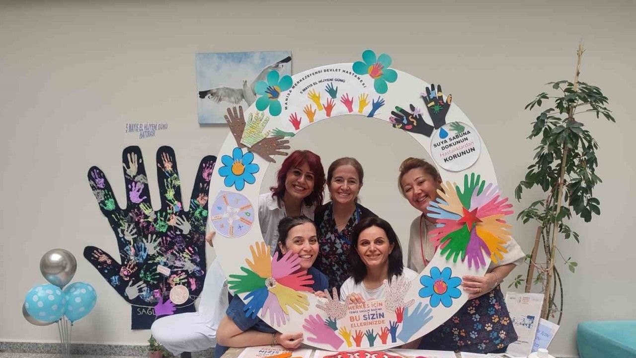 Dünya El Hijyeni Günü dolayısıyla Manisa Merkezefendi Devlet Hastanesinde stant açıldı. Stantta, hastalara el hijyeninin önemiyle ilgili broşür, el dezenfektanı ve el şeklinde yapılmış olan kurabiyeler dağıtıldı. Hastane yönetimi de standı gezerek enfeksiyon kontrol ekibine destek oldu. Enfeksiyon kontrol hemşireleri tarafından el hijyeniyle ilgili sorular, standa gelenlere sorularak bilgilendirme yapıldı. Konuyla ilgili açıklamada bulunan Enfeksiyon Kontrol Hemşiresi Süheyla Bastem, “Dünya Sağlık Örgütü 5 Mayıs’ı Dünya El Hijyeni günü olarak belirlemiştir. Biz de Merkezefendi Devlet Hastanesi Enfeksiyon Kontrol Komitesi olarak her yıl olduğu gibi bu yıl da hastalarımıza, çalışanlarımıza el hijyeninin önemini anlatmak için bugün stant açtık” şeklinde konuştu.