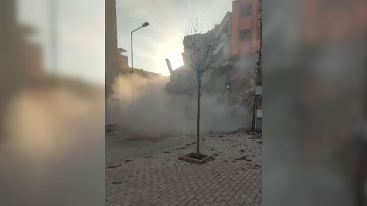 6 Şubat’ta Kahramanmaraş merkezli meydana gelen depremlerden etkilenen iller arasında bulunan Elazığ’da ağır hasarlı binaların yıkımları sürüyor. Bu çerçevede, merkeze bağlı Sarayatik Mahallesi’nde yıkımına başlanan 4 katlı bina, iş makinesinin vurmasıyla yerle bir oldu. O anlar cep telefonu kamerasına saniye saniye yansıdı.