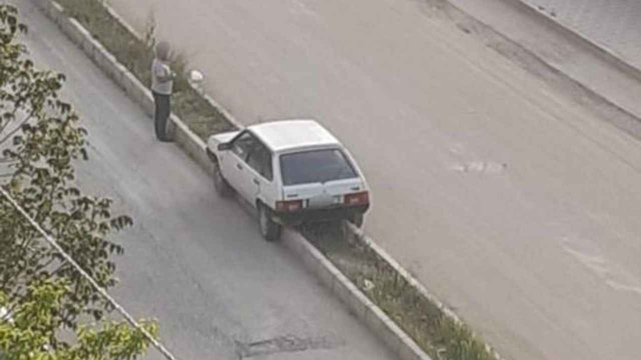 Elazığ’da sürücüsünün direksiyon hakimiyetini kaybettiği otomobilin, park etmiş gibi refüje oturması görenleri hayrete düşürdü.