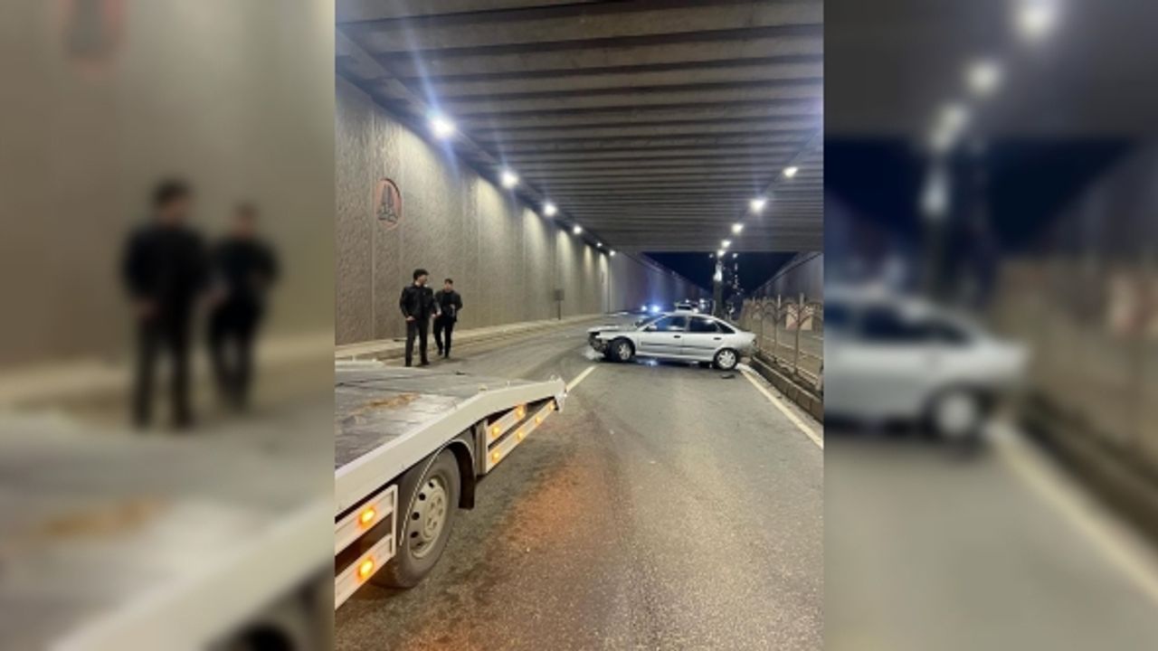 Elazığ’da alt geçitte sürücüsünün direksiyon hakimiyetini kaybettiği otomobil, refüje çarparak durabildi.