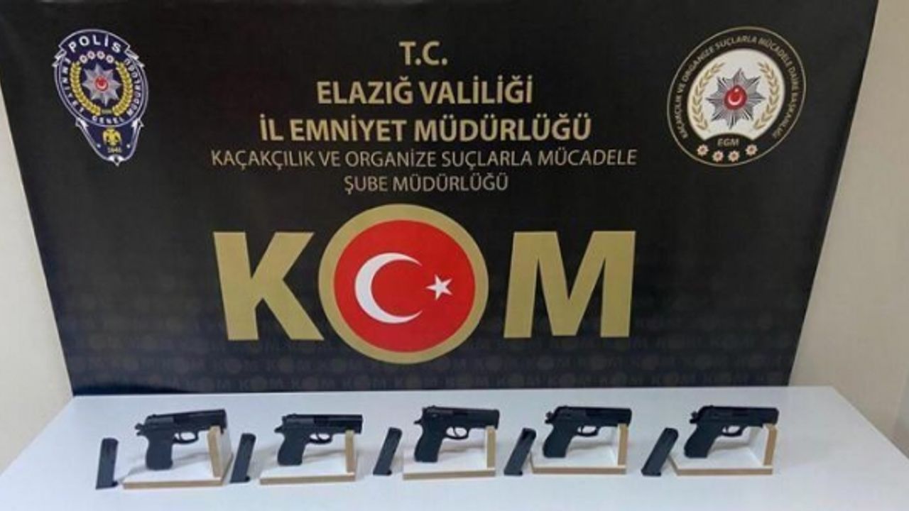 Elazığ’da polis ekipleri tarafından yapılan çalışmada, 5 adet ruhsatsız tabanca ele geçirilirken 2 şüpheli gözaltına alındı. Adliyeye sevk edilen şüpheliler tutuklanarak cezaevine gönderildi.