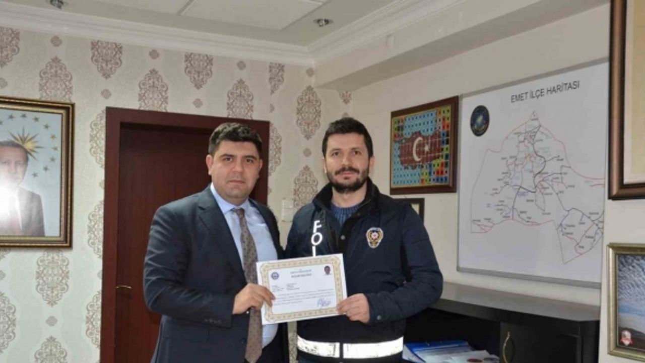 Emet Kaymakamı Furkan Seyman, İlçe Emniyet Müdürlüğünde görev yapan polis memurlarına görevlerinde göstermiş oldukları başarılarından dolayı başarı belgesi verdi.