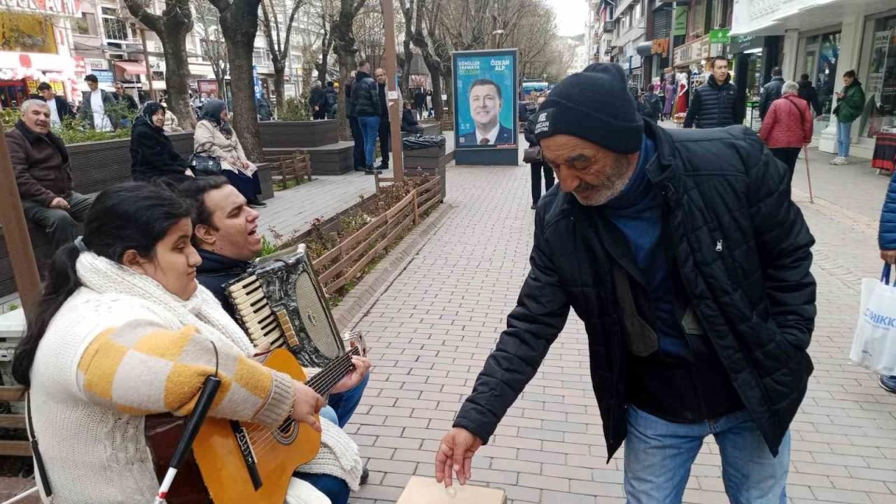 Hamamyolu Caddesi üzerinde gitar ve akordiyon çalarak şarkı söyleyen görme engelli sokak müzisyenleri adeta kulakların pasını sildi. Kentteki güzel havayı fırsat bilerek çarşıda gezen ve banklarda soluklanan vatandaşlar müzisyenlere yoğun ilgi gösterdi. Bazı vatandaşlar engelli müzisyenlerin önlerinde bulunan kutuya bağış atarak sanatlarına destek olurken, bazıları da o anları cep telefonu kameraları ile kayıt altına aldı.