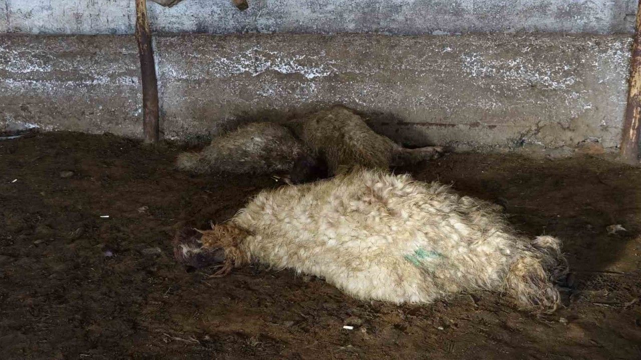 Van’ın Erciş ilçesinde akşam ahıra kapatılan koyunlar, havasızlıktan telef oldu.