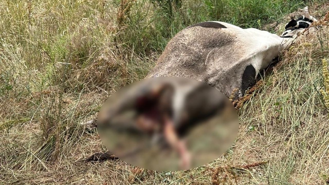 Balıkesir’in Erdek ilçesinde bir inek, yırtıcı hayvan tarafından saldırıya uğrayarak parçalanmış halde bulundu.