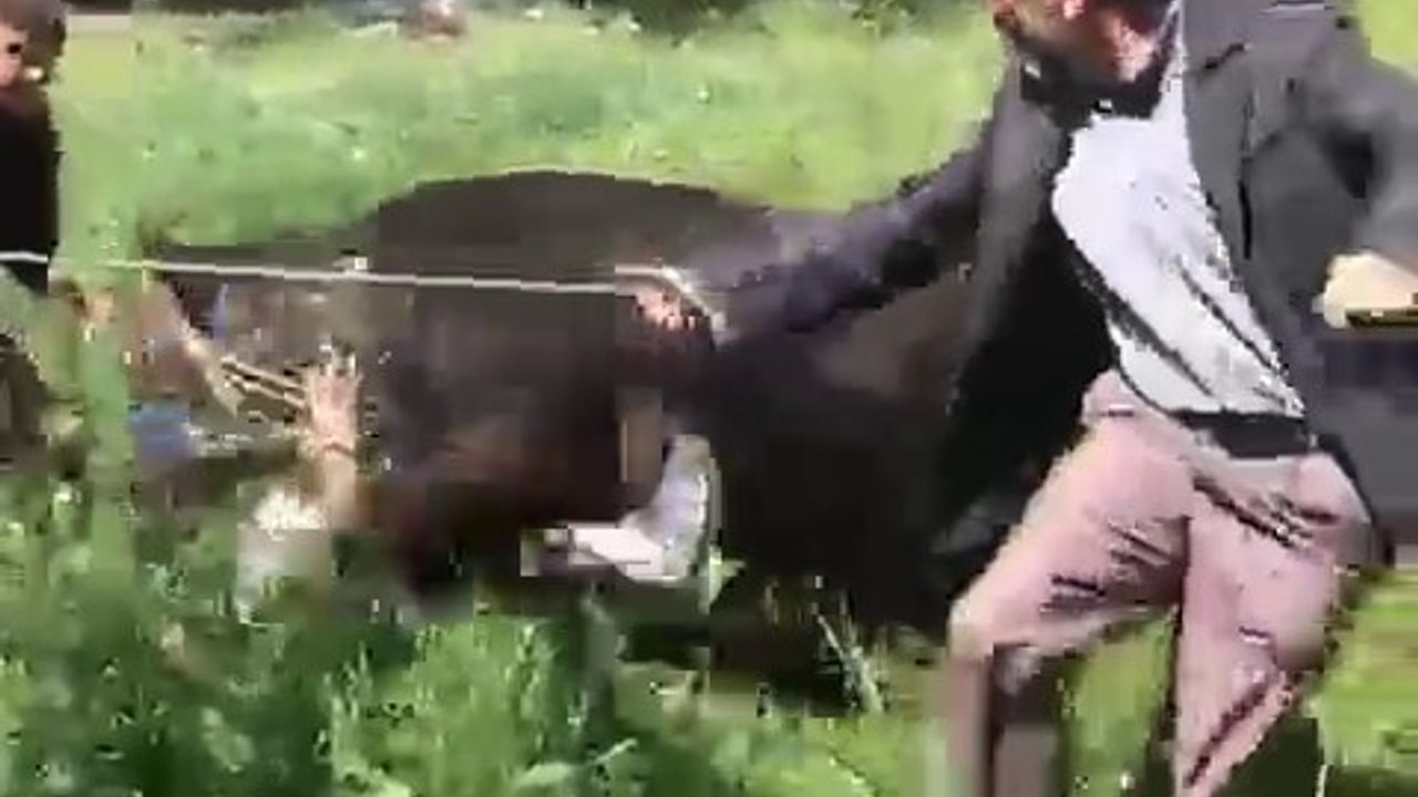 Erzurum’un Pasinler ilçesi Nebihanları bölgesinde kaçan kurbanlık herkesi korkuttu. Açık alanda kurban hazırlığı yapan vatandaşlar bir anda hayvanlarını ellerinden kaçırdı. İki kişiyi yaralayan tosun açık arazide kayıplara karıştı. Kaçan tosundan korkan bazı vatandaşlar ise ağaçlara tırmandı. Uzun süre sahiplerini peşinden koşturan kurbanlık büyük uğraş sonucu yakalandı.