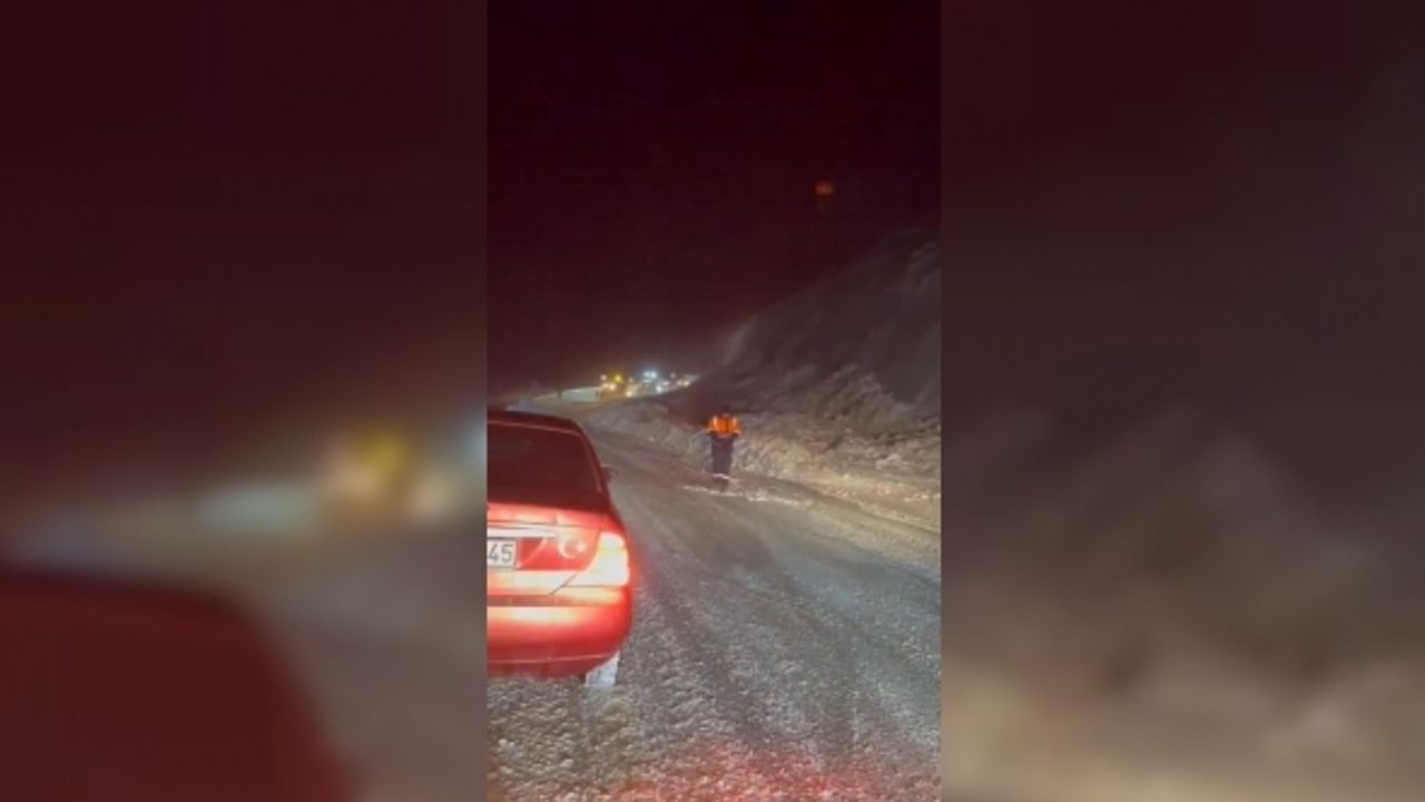 Düşen çığın ve karayolunun temizleme işlemleri devam ediyor.