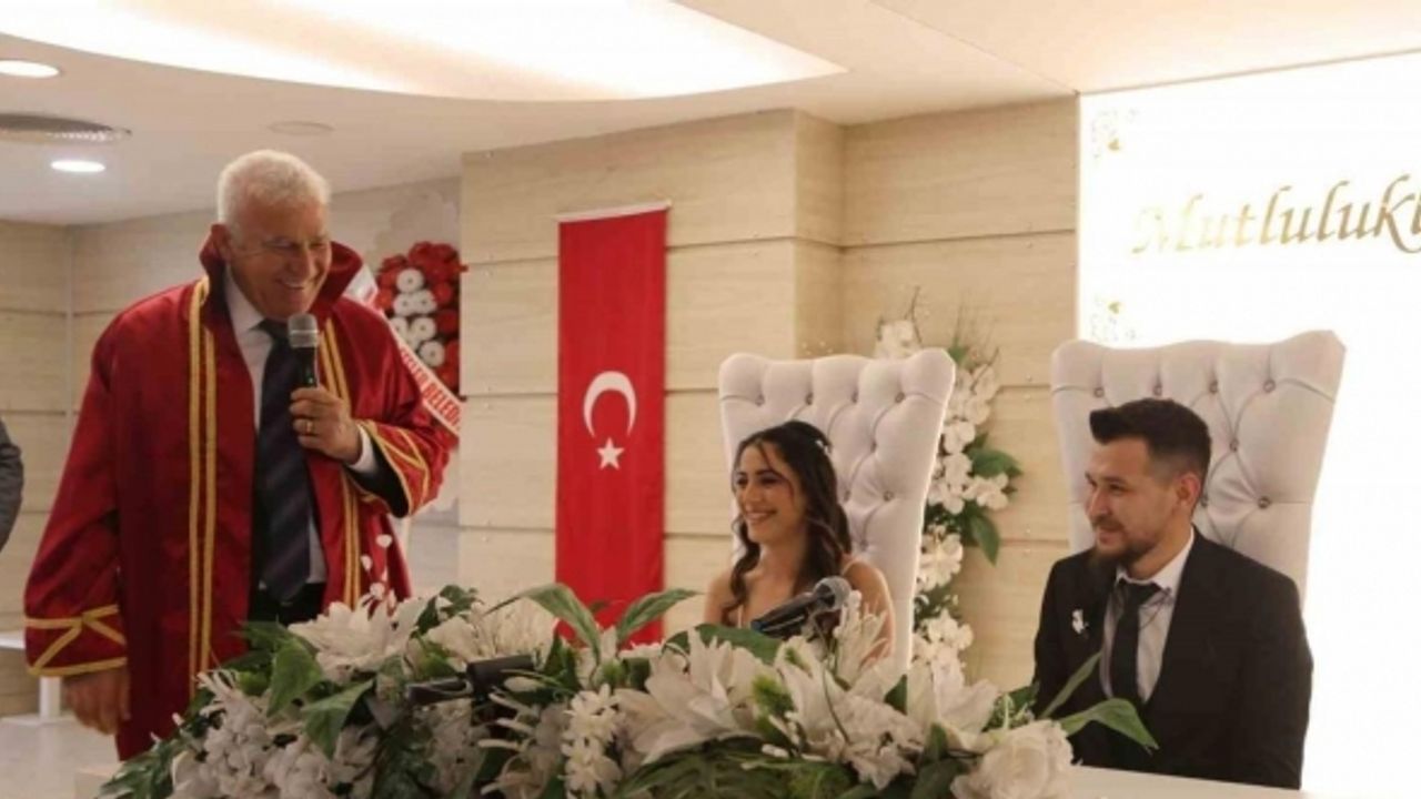 Efeler Belediyesi Nikah Dairesi’nde düzenlenen törende Başkan Mehmet Fatih Atay, evlilik cüzdanını Buket Aksoy’a takdim ederek, “Siz talep etmediğiniz halde, hoş bir sürpriz yaparak bu anlamlı günde özellikle nikahınızı ben kıymak istedim. Aile cüzdanını Buket’e veriyorum çünkü kadınların yuvayı iyi bir şekilde yönettiği zaman o yuvanın başarıya ulaşmaması için hiçbir neden yoktur. Mutluluklar diliyorum. Tıpkı sizin ailelerinizin sizleri yetiştirdiği gibi çağdaş, Atatürk ilkelerine inanmış, Cumhuriyet’i seven ve sahip çıkan evlatlar yetiştirmenizi diliyorum” diye konuştu.