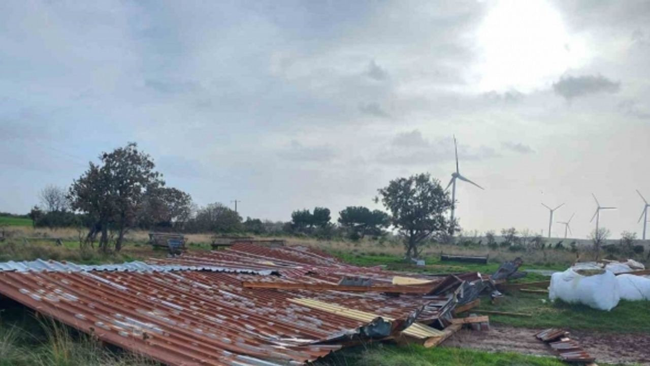 Çanakkale’nin Ezine ilçesine bağlı Üvecik köyünde, 130’a yakın küçükbaş hayvanın bulunduğu ağılın çatısı fırtına nedeniyle uçtu.