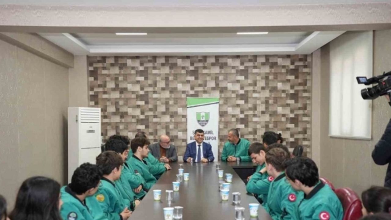 2023 yılını birbirinden önemli sportif başarılarla tamamlayan Şehitkamil Belediye Spor Kulübü Yüzme Takımı sporcuları, Şehitkamil Belediye Başkanı Rıdvan Fadıloğlu’nu ziyaret etti. Kulvarlarda elde edilen başarıların değerlendirildiği buluşmada altın kulaçlar, elde ettikleri başarıları büyük bir gururla paylaştılar.