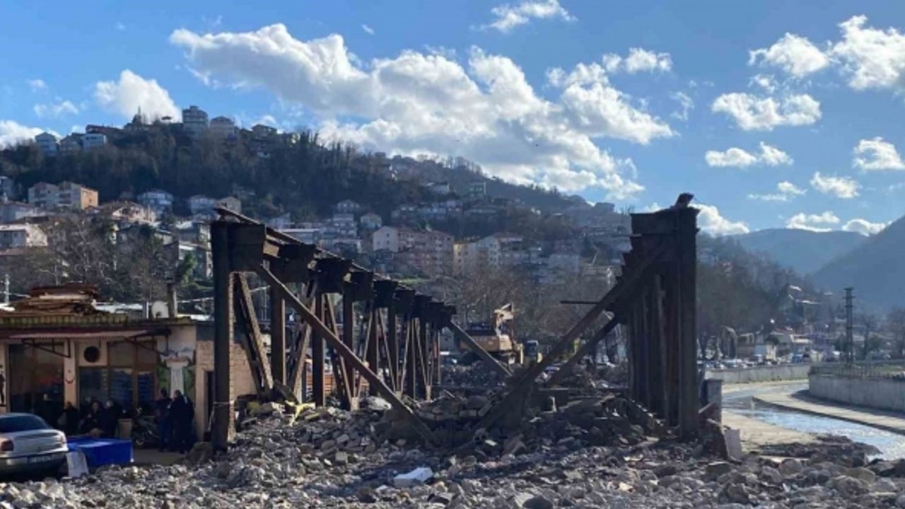 Zonguldak’ta yıkım çalışmaları süren Fevkani Köprüsü’nde İstasyon Caddesi’ndeki kalan parça su borusunun kaldırılmasının ardından alınacak.