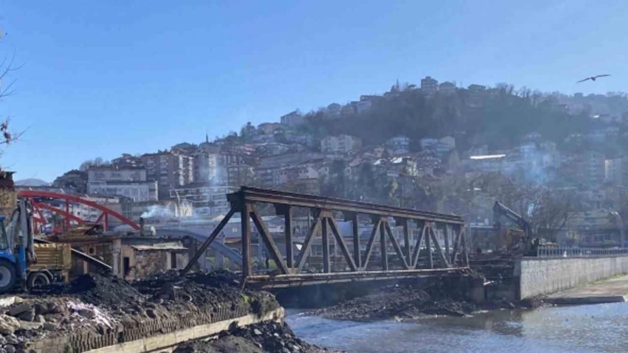Zonguldak’ta Fevkani köprüsünün kalan parçası yıkılmaya başlandı.