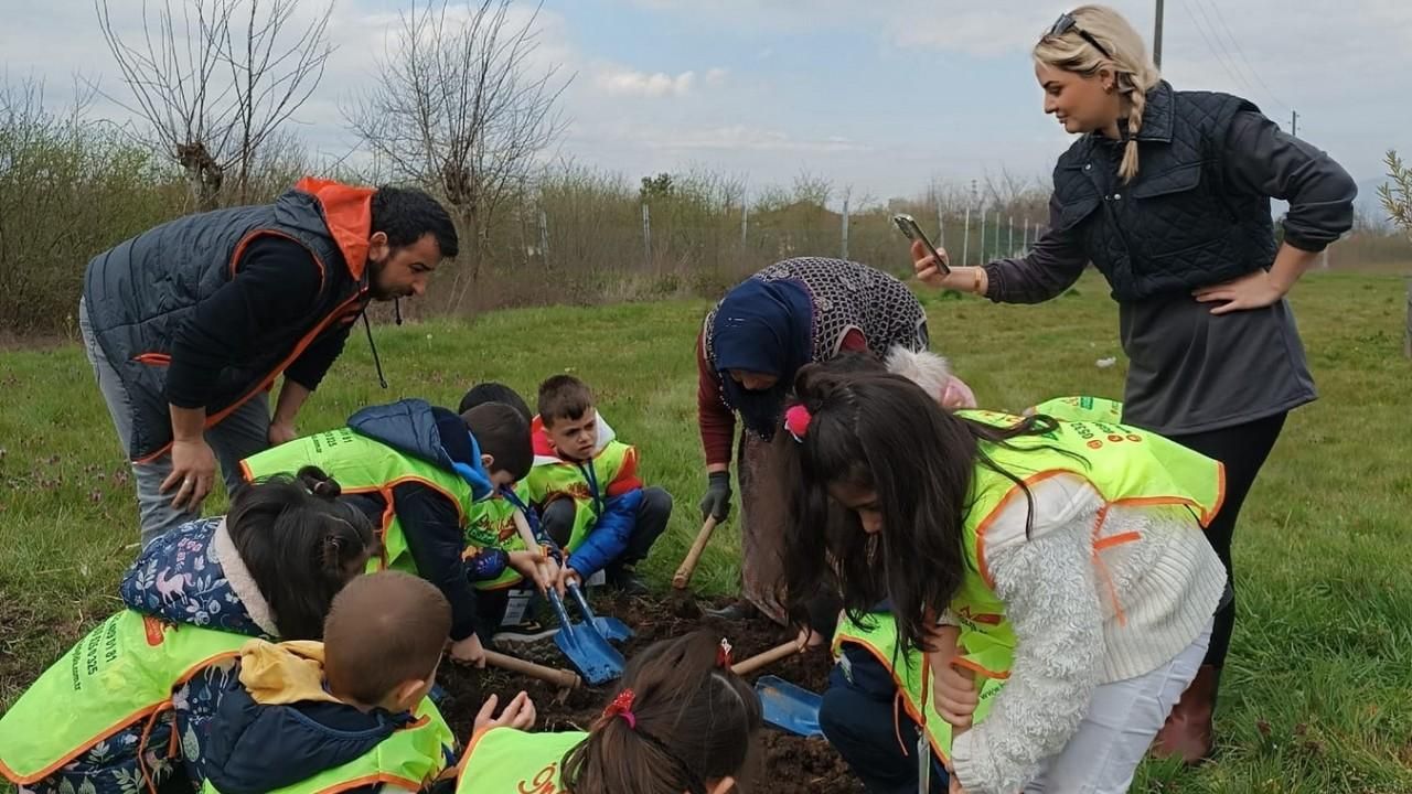 DÜZCE(İHA) – Düzce’de minik eller büyük ormanlar oluşturmak için çalıştı. Öğrenciler fidanın ağaca nasıl dönüştüğünü öğrendiler.