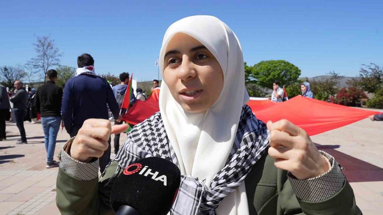 Üniversitenin Fizik bölümünde doktora eğitimi gören Filistinli kadın Yosra A Mater (31), İHA muhabirine, Filistin’in tüm Müslümanların olduğunu belirtti.