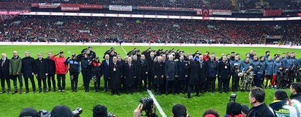 Cumhurbaşkanı Erdoğan ve Devlet yetkilileri, güvenlik güçlerimizi ve milletimizi bir araya toplayan futbol devletin ve milletin el ele olduğunu gösterdi. Futbol şehit ailelerine destek amacıyla düzenlendi.