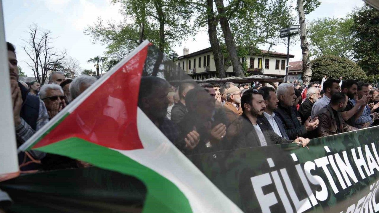 Bursa’da Ulu Cami’nde cuma namazı için bir araya gelen vatandaşlar, İsrail’in saldırısında hayatını kaybeden Hamas Siyasi Büro Başkanı İsmail Haniye’nin 3 oğlu ile 4 torunu ve Gazzeli Müslümanlar için gıyabi cenaze namazı kıldı. Cuma namazı sonrasında cami avlusunda toplanan yüzlerce vatandaş, kılınan namazın ardından Filistin için dua ettiler.