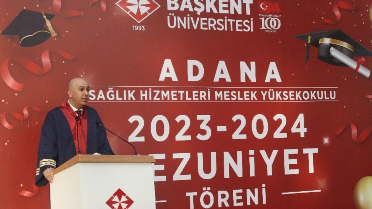 Adana Sağlık Hizmetleri Meslek Yüksekokulu Müdürü Doç. Dr. Esin Özşahin ise konuşmasında, "Sevgili gençler, sizleri hayat tercihiniz, duruşunuz ve eğitim-öğretim hayatınızdaki başarılarınız için kutluyorum. Başkentli olmak, Başkent Üniversitesi diplomasına sahip olmak ve özellikle Adana Sağlık Hizmetleri Meslek Yüksekokulu mezunu olmak sizler için çok büyük bir ayrıcalıktır. Bugün uzun ve emek dolu bir yolculuğun sonunda mezun olmanın gururunu yaşıyorsunuz. Bu süreçte yoğun bir çalışma ve azim gösterdiniz, zorlukların üstesinden gelerek hedefinize ulaştınız. Şimdi yeni bir döneme adım atıyorsunuz. Bu yeni dönemde Başkent Üniversitesi mezunu olarak bizleri ve ailenizi her zaman gururlandıracağınıza eminim. Hepinize çok teşekkür ediyorum. Başkent Üniversitesi Adana Sağlık Hizmetleri Meslek Yüksekokulu, 2008-2009 eğitim-öğretim yılında eğitim hayatına başladı. Bugün 15. dönem mezunlarımızı yolcu etmenin gururunu yaşıyoruz. Kurulduğumuz ilk günden beri her zaman arkamızdaki destekle ve güçlü vizyonla bu günlere geldik. Mensubu olmaktan gurur duyduğum Başkent Üniversitesi, sayın kurucu rektörümüz ve yönetim kurulu başkanımız Prof. Dr. Mehmet Haberal hocamıza şükranlarımı sunuyorum” dedi.