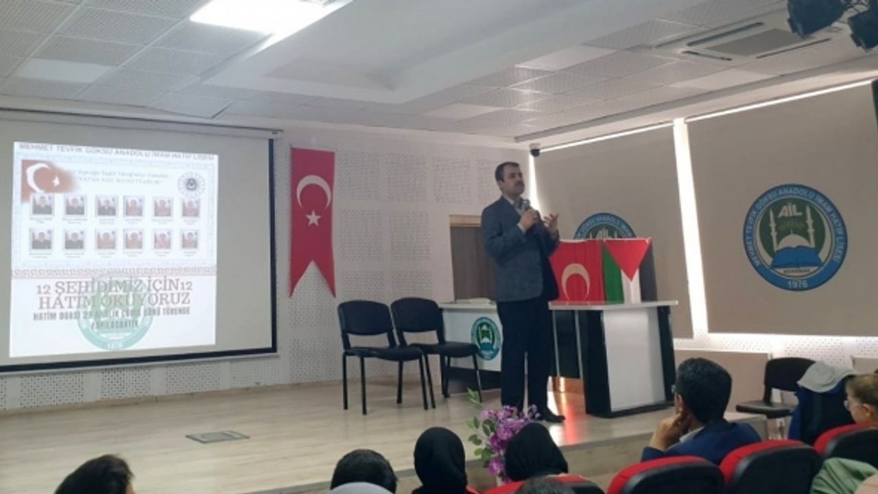 Gölbaşı Mehmet Tevfik Göksu Anadolu İmam Hatip Lisesi’nde şehitler için hatim duası yapıldı. Gölbaşı Mehmet Tevfik Göksu Anadolu İmam Hatip Lisesi Müdürü Abdullah Çaktı, “Okulumuz olarak şehitlerimiz için hatim programı icra ettik. 12 şehidimiz için 12 hatim okuduk. Şehitlerimizin ruhları şad, makamları ali olsun" ifadelerini kullandı.