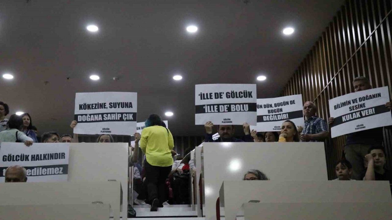 Meclis toplantısı öncesinde bungalov evlerin kullanılmasına karşı çıkan Gölcük Platformu, Bolu Belediyesi önünde eylem yaptı. Belediye meclisi başlamadan önce Gölcük Platformu üyeleri meclis salonunu bastı. Oturumun başlamasıyla birlikte Gölcük Platformu üyelerinin slogan ve alkışlı protestoları devam etti.