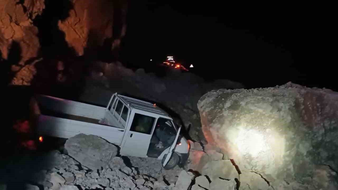 Edinilen bilgiye göre, saat 21.00 sıralarında Hakkari’den 15 kilometre uzaklıktaki Hakkari-Çukurca karayolu Vali Erdoğan Gürbüz Çeşmesi mevkiinde dağdan kopan dev kayalar yola düştü. Kayaların geldiğini gören sürücüler canlarını zor kurtarırken, bir araç ise kayaların arasında kaldı. Bölgeye jandarma, AFAD, itfaiye, sağlık ve Karayolları ekipleri sevk edildi. Dev kayaların düştüğü bölgede karayolunun her iki tarafında araçlar mahsur kaldı.
