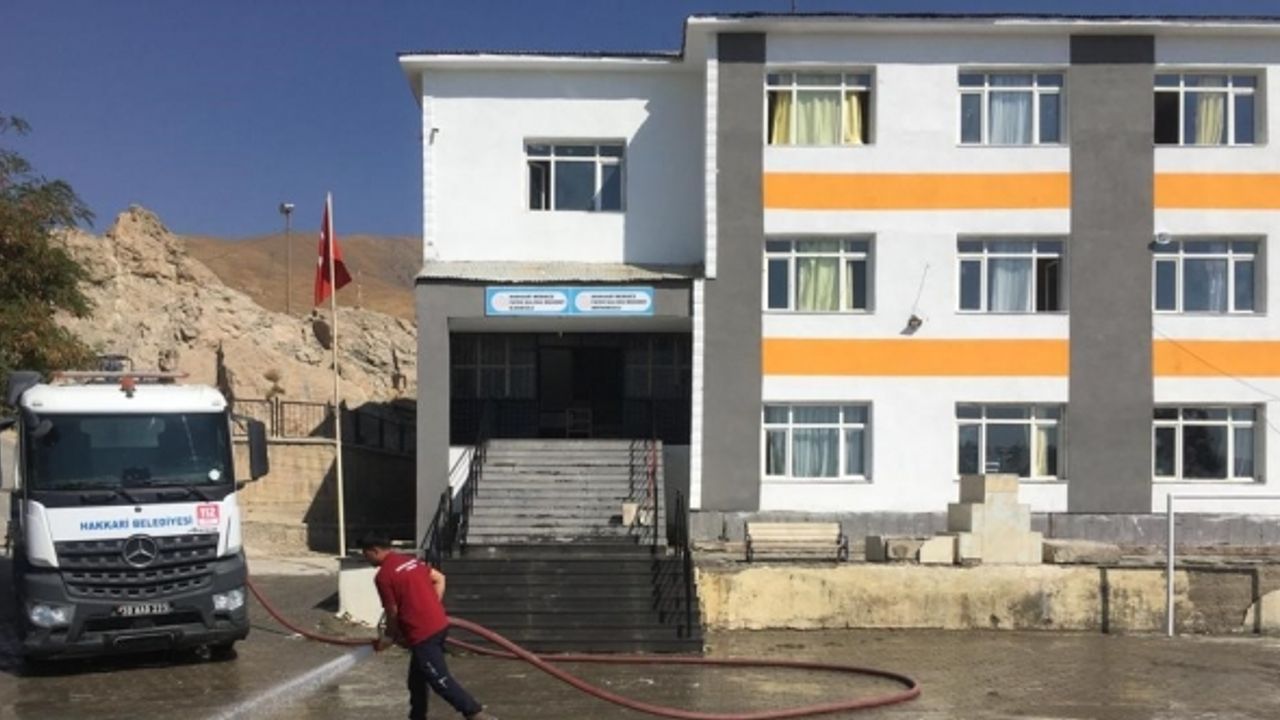 Hakkari Belediyesi İtfaiye Müdürlüğü ekipleri, kentin birçok noktası ile okulların önlerini tazyikli suyla yıkadı.