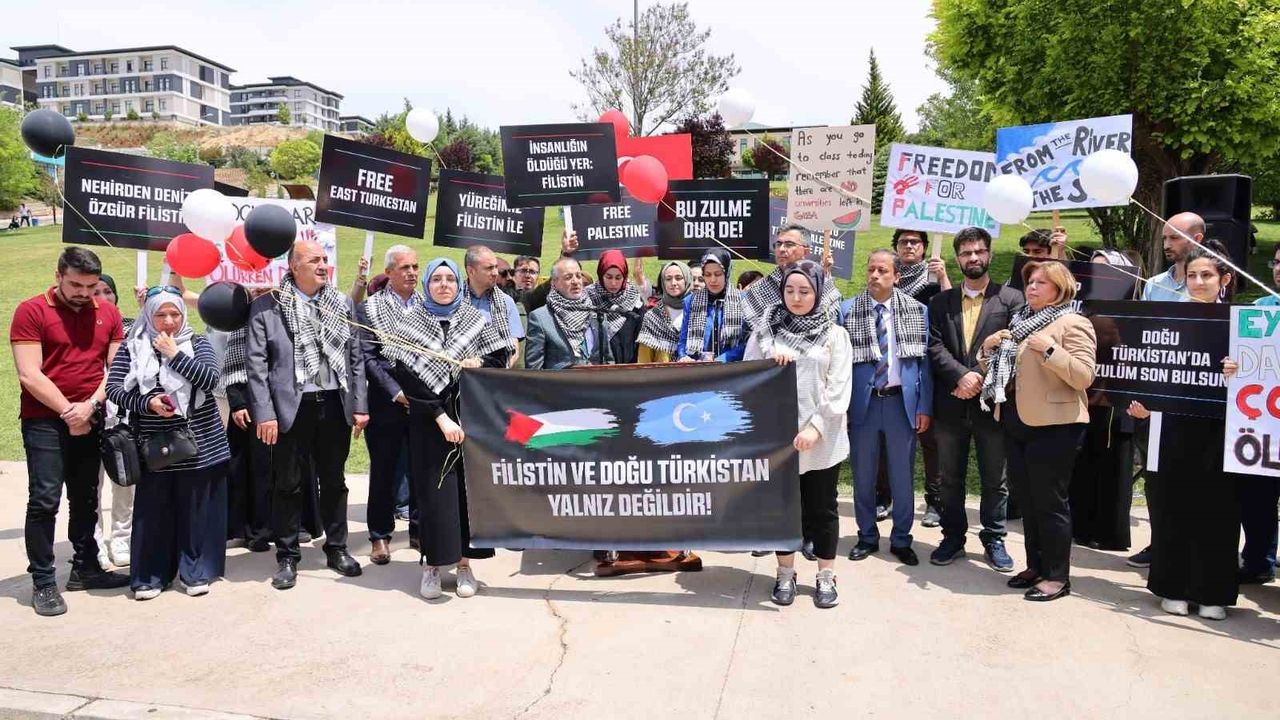 HKÜ Rektörü Prof. Dr. Türkay Dereli, HKÜ Mütevelli Heyet Üyesi Prof. Dr. Necip Fazıl Yılmaz, Rektör Yardımcıları Prof. Dr. Gül Rengin Küçükerdoğan ve Prof. Dr. Mehmet Lütfi Yola, HKÜ Genel Sekreteri Ümit Şahnaoğlu, dekanlar, akademik ve idari personel ile öğrencilerin katıldığı yürüyüşte, katılımcılar ellerinde; çoc "Filistin ve Doğu Türkistan yalnız değildir", "Bu zulme dur de", "İnsanlığın öldüğü yer: Filistin", "Çocuklar ölürken susulmaz", "Ey dünya daha kaç çocuk ölmeli", "Gazze’de soykırım var" yazılı pankart ve dövizler taşıdı.