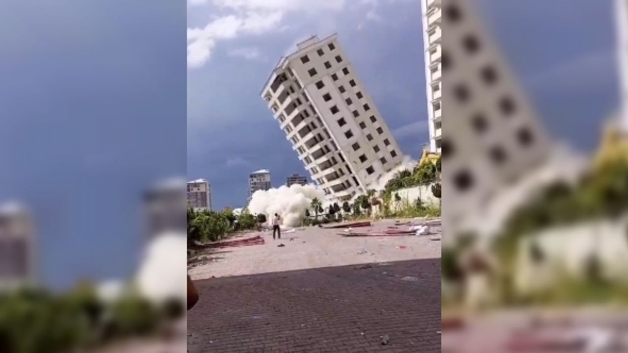 6 Şubat tarihinde Kahramanmaraş merkezli yaşanan 7,7 ve 7,6 şiddetindeki depremlerde ağır hasar alan binaların yıkımı devam ediyor. Merkez Onikişubat ilçesi Üngüt Mahallesi’nde depremlerde ağır hasar gören 15 katlı Batı Şehir Park Sitesi, yıkım sırasında alışılmışın aksine olduğu gibi öne çöktü. Çalışmayı takip eden vatandaşlar binanın yıkımı esnasında kısa süreli panik yaşarken, binanın yıkıldığı anlar bir vatandaşın kamerasına yansıdı.