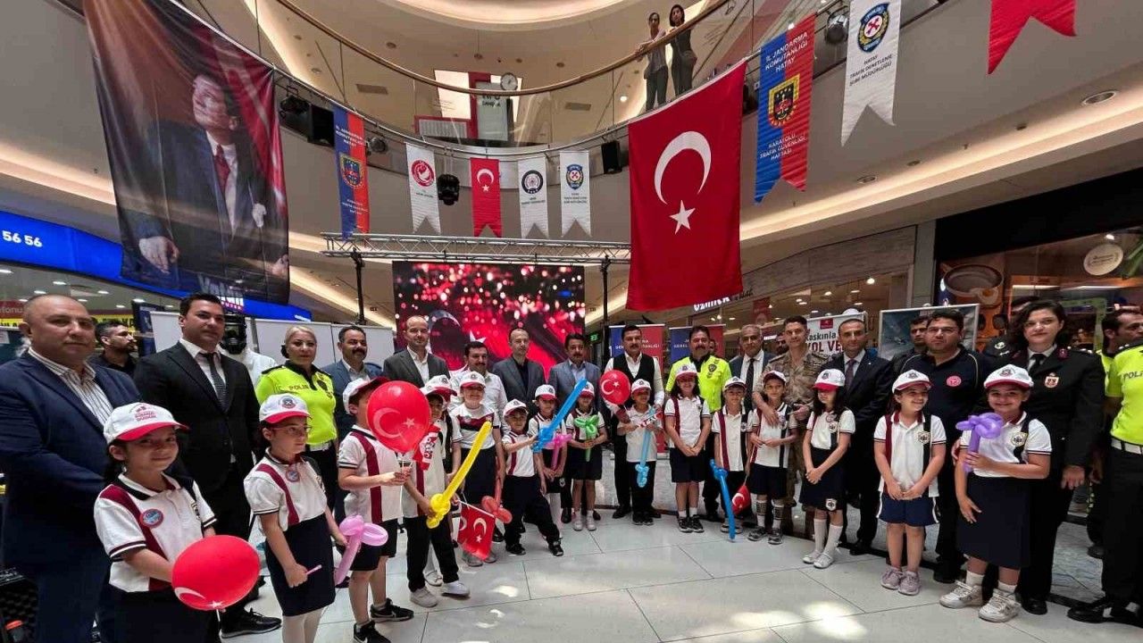 Hatay’ın İskenderun ilçesinde bir alışveriş merkezinde çocuklara ve ailelerine trafik eğitimi verildi.