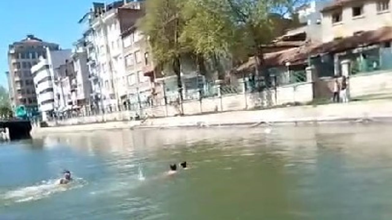 Eskişehir’de hava sıcaklıklarının artmasıyla birlikte Porsuk Çayı’nda yüzerek serinlemeye çalışan çocukların tehlikeli hareketleri bir vatandaşın cep telefonu kamerasına yansıdı.