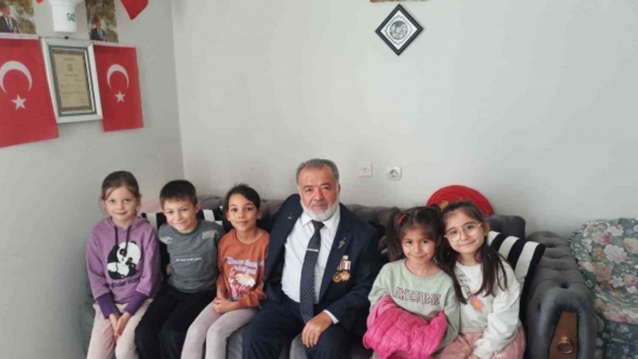 Kütahya’nın Hisarcık ilçesi Cumhuriyet İlkokulu 3. Sınıf öğrencileri Kıbrıs gazisi Mehmet Şener’i evinde ziyaret etti.