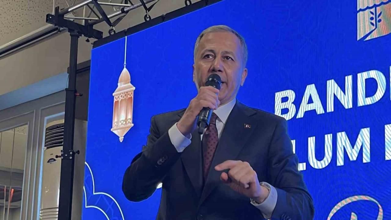 Bakan Yerlikaya, iftarın ardından yaptığı konuşmada, “Türkiye’nin huzuru diyoruz. Kara vatanda, mavi vatanda, siber vatanda Türkiye’nin güvenliği ve huzuru için gayret gösteriyoruz. Bakın, 40 yıldan bu yana mücadele ettiğimiz, son çırpınışlarını görüyorsunuz. Hain bölücü terör örgütü ile uğraşıyoruz. Sınırın içinde dışında ayrımı yapmıyoruz. Sayın Cumhurbaşkanımız ne diyor, son terörist etkisiz hale getirilinceye kadar durmak diyor. Sınırın içinde biz, sınırın dışında pençe harekatları ile Savunma Bakanlığımız, Milli İstihbarat Teşkilatımız nokta atışlar ile elini kaldıran varsa adalete teslim ediyoruz. Organize Suç Örgütleri, sizlere suç işlemek için kibirleniyorlarsa, hiç kusura bakmasın. Onu, bulunduğu yerde diz çöktürüp adalete teslim ediyoruz. Sayın Cumhurbaşkanımız ne dedi? Şehir eşkıyalığı yapan bir kişi bırakmayacaksın dedi. Zehir tacirleri, gençlerimizi, yarınlarımızı kim karartmaya çalışıyorsa, baronundan sokak satıcısına kadar adalete teslim etmeye devam edeceğiz" dedi.
