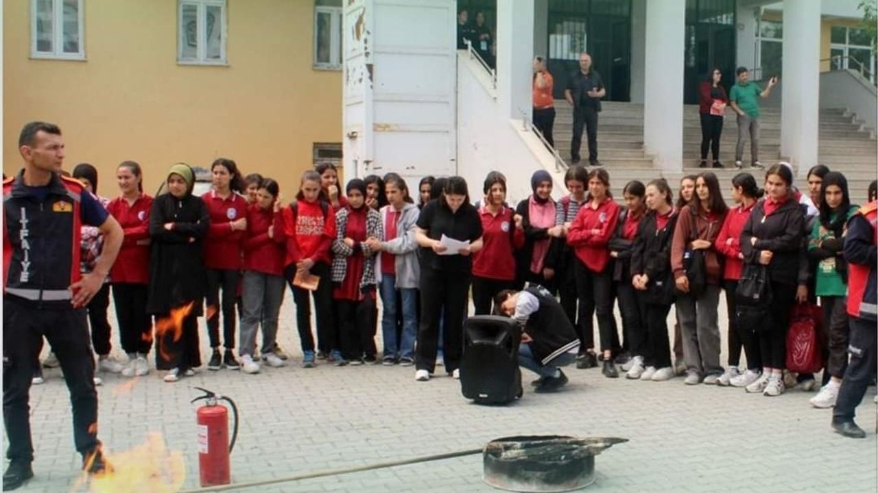 Iğdır’da belediye tarafından lise öğrencilerine herhangi bir yangına karşı önlem için yangın tatbikatı yapıldı.
