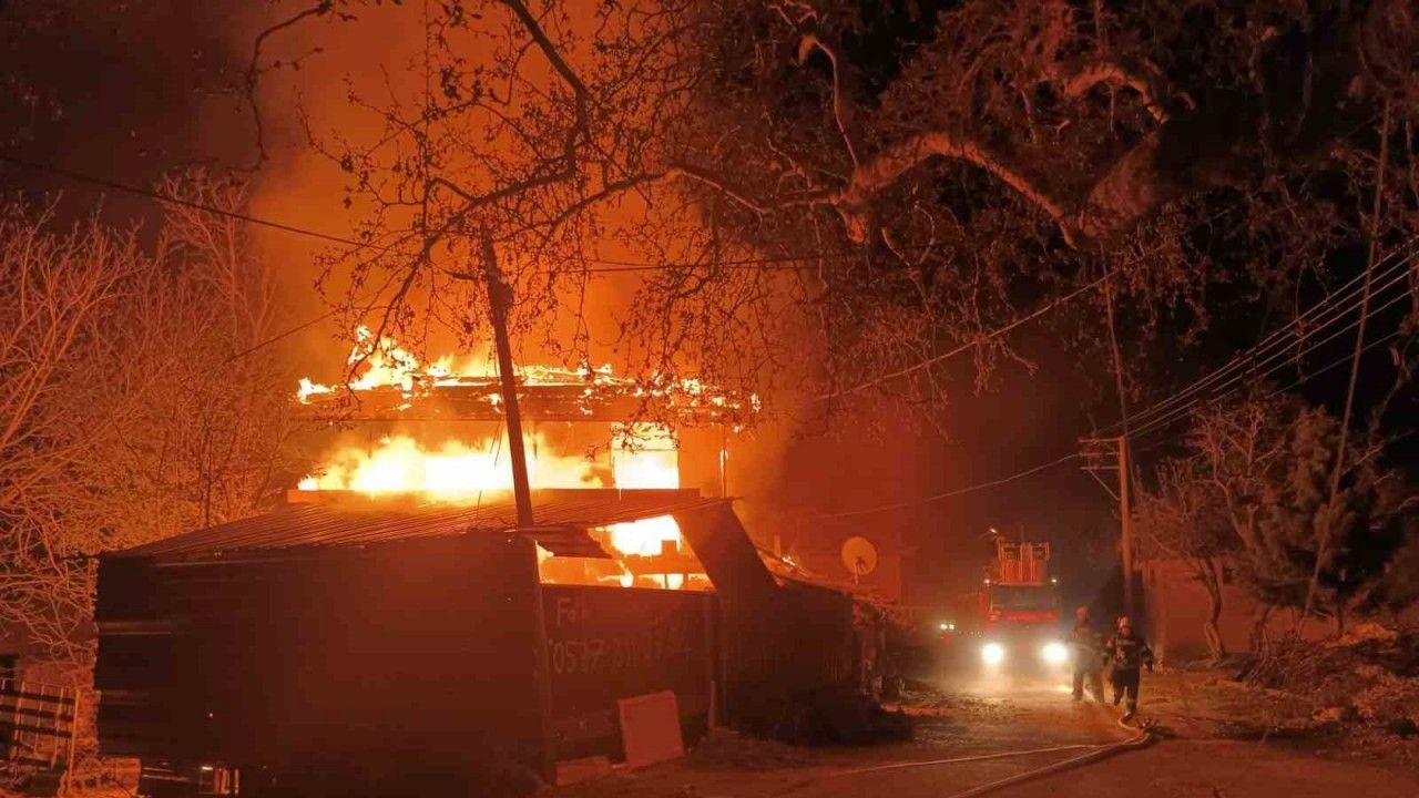 Denizli’de gece saatlerinde iki katlı binada çıkan yangın geceyi aydınlattı.