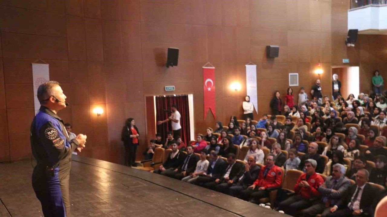 Çok sayıda öğrencinin katılım sağladığı programda, astronot Gezeravcı, ilk uzay yolculuğu öncesinde sürece dair yapılan ön hazırlıklar hakkında kapsamlı bilgiler aktararak, projenin Türkiye açısından önemine vurgu yaptı.