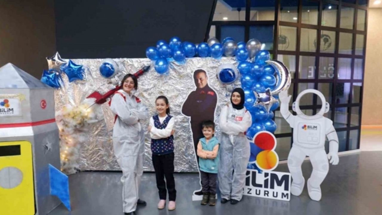 Erzurum’da gençler ve çocuklar Türkiye’nin ilk uzay yolculuğu heyecanını yaşamak için buluştu.